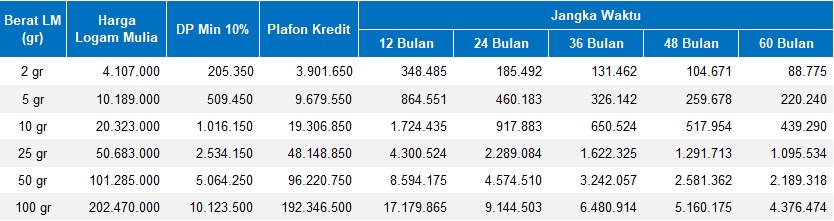 Tabel Simulasi Kredit Logam Mulia